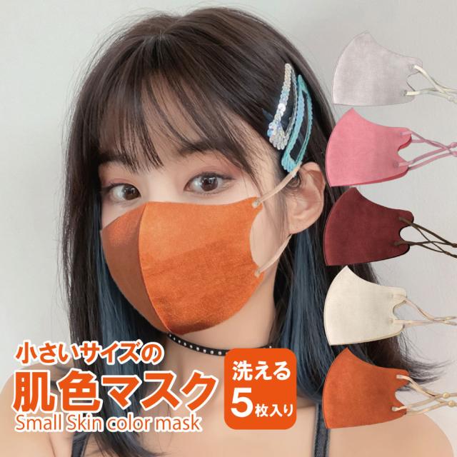 マスク 洗える 血色マスク 肌色マスク 5枚入り 小さめサイズ プレゼント有り Sサイズ 小顔マスク スエード生地