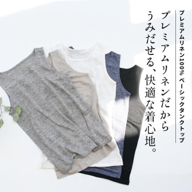 プレミアムリネン100% ベーシック タンクトップ 日本製 / インナー タンクトップ レディース 40代 50代 60代 麻 インナー ノースリーブ 速乾 抗菌 涼しい 大きいサイズ ストレッチ