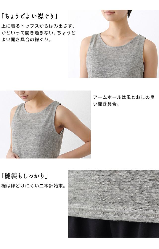 リネン インナー タンクトップ レディース リネン100% 涼しい 日本製 天然素材 40代 50代 60代 女性 麻100 ファッション ノースリーブ 速乾 大きいサイズ