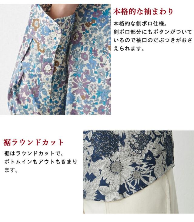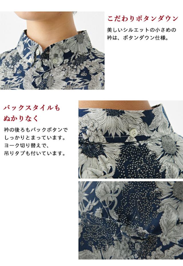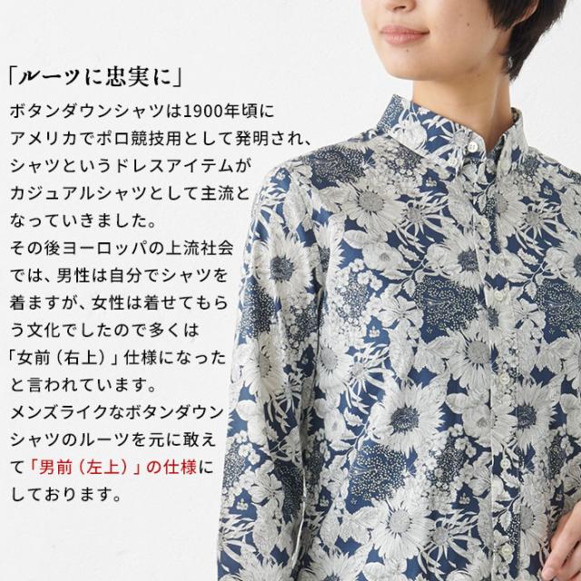 リバティ プリント ボタンダウンシャツ 日本製 / リバティブラウス レディース きれいめ トップス 40代 50代 60代 30代 シャツ 長袖 柄物 カジュアル リバティー 花柄 リバティ生地