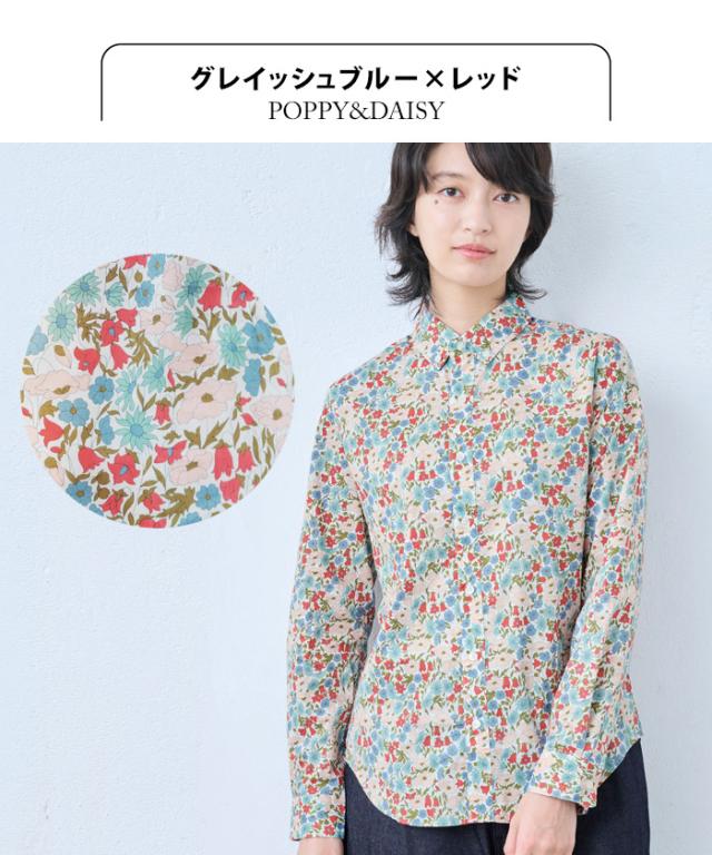 リバティ ブラウス 長袖 ボタンダウン リバティプリント シャツ 日本製 40代 50代 60代 女性 ファッション レディース シャツ 花柄 リバティー リバティ生地 タナローン Emilia's Flowers Swim Dunclare Small Susanna Emily Wild Flowers Queue For The Zoo POPPY&DAISY