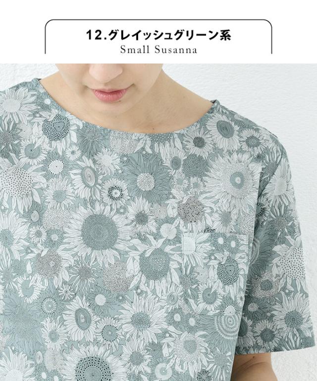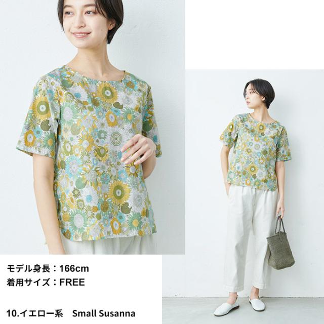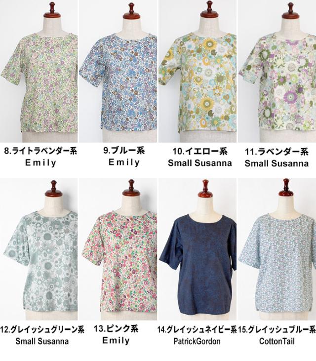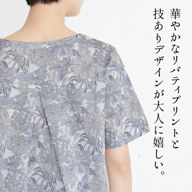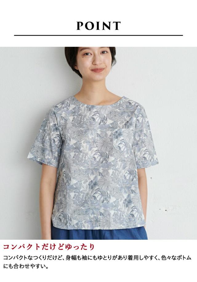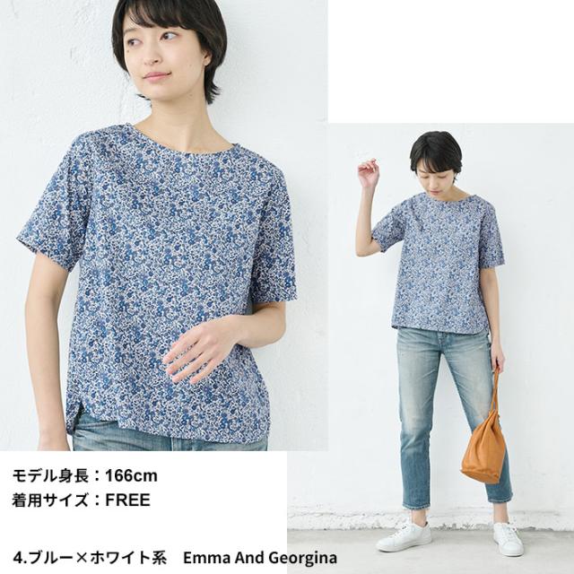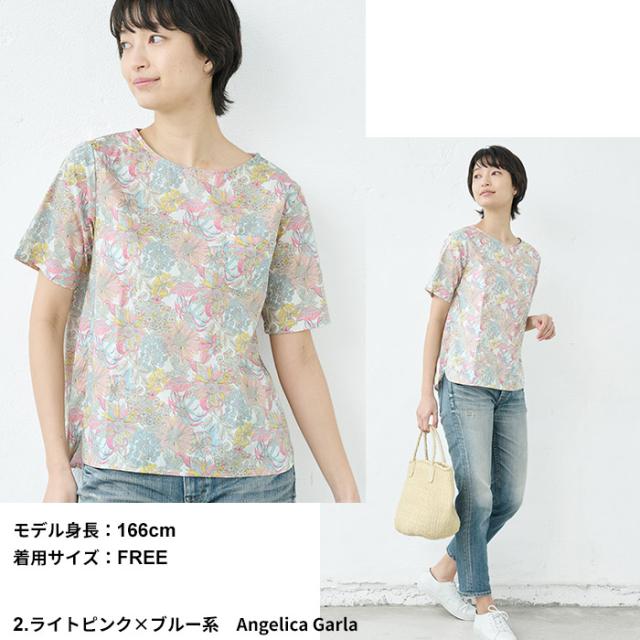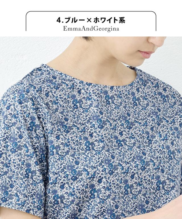 リバティプリント Tシャツブラウス 日本製 / リバティ ブラウス 花柄 半袖シャツ レディース 40代 50代 60代 30代 女性 ファッション Tブラウス レディース ノーカラー リバティー Liberty