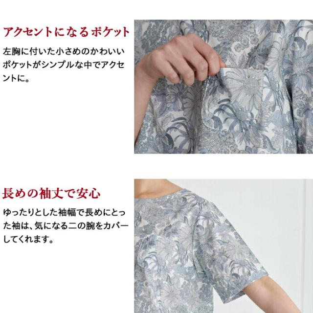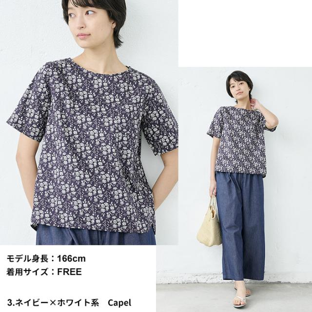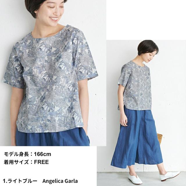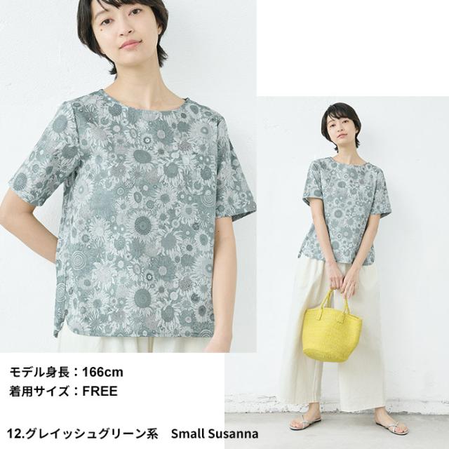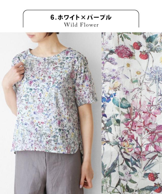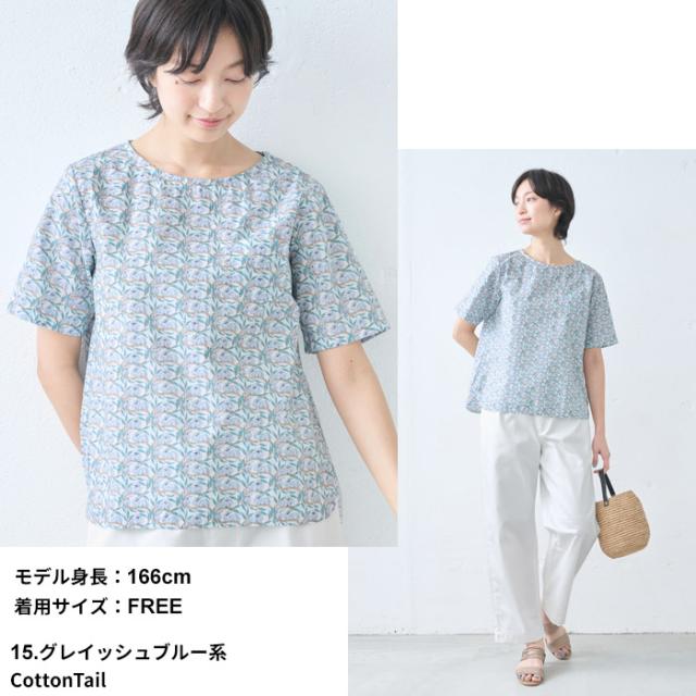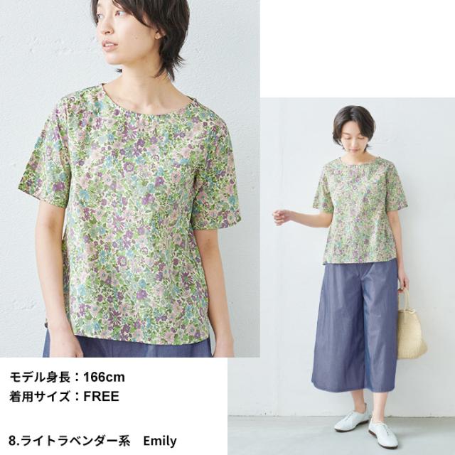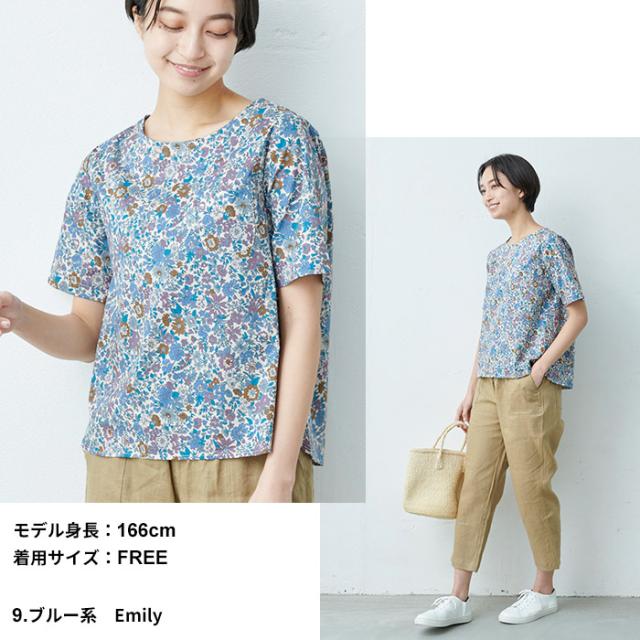 リバティプリント Tシャツブラウス 日本製 / リバティ ブラウス 花柄 半袖シャツ レディース 40代 50代 60代 30代 女性 ファッション Tブラウス レディース ノーカラー リバティー Liberty