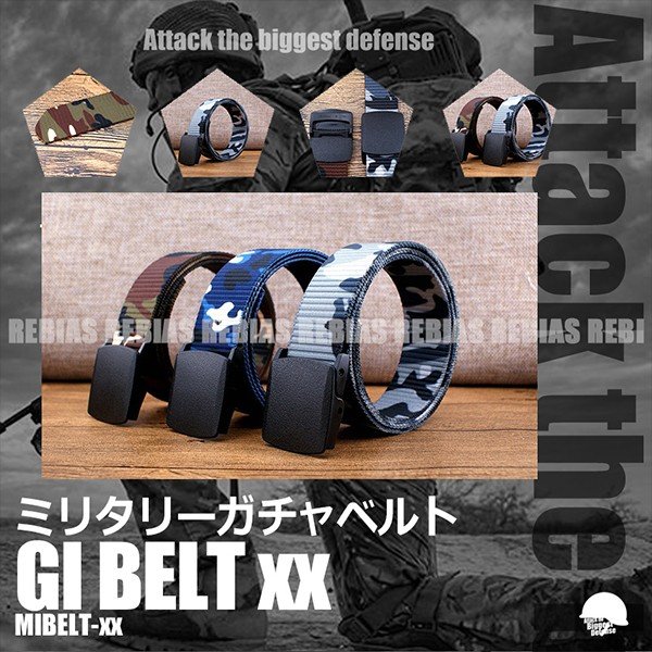 カモフラージュ ベルト ミリタリー ガチャベルト 迷彩 軍 GIベルト 105cm ファッション サバゲー