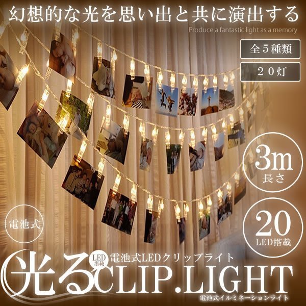 写真 イルミネーション 装飾ライト 20灯 クリップLEDライト 3m ポストカード 電飾 電池式 配線不要 室内用