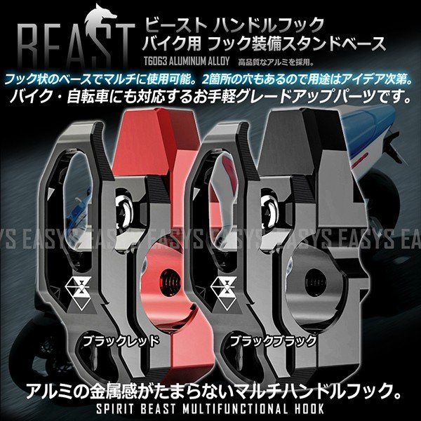 ビースト 荷物 ハンドル フック 吊り下げ バイク カスタムパーツ アルミ 汎用 スタンド 自転車 BEAST
