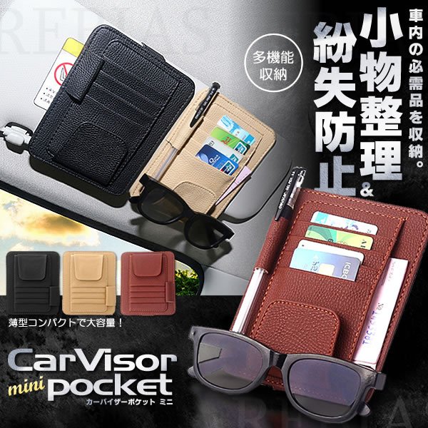 サンバイザー ポケット ミニ カードホルダー 取付簡単 収納 ポケット フロント 日よけ 収納ホルダー かわいい 運転席