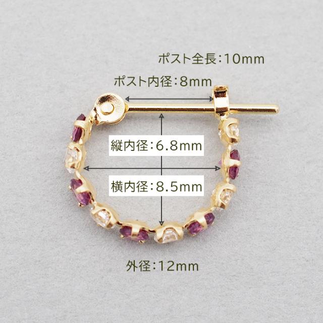 | 全長:約12mm フープ内径:縦 約6.8mm、横 約8.5mm ストーン:1石 直径2mm |