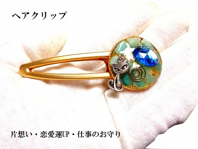 恋愛・片思い・仕事のお守り★アマゾナイト★ネコ・ねこ・猫★ヘアクリップ★パワーストーン★護符(霊符)