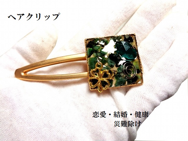 恋愛・結婚・健康・災難除け★エメラルド★クローバー・四つ葉★ヘアクリップ★パワーストーン★護符(霊符)