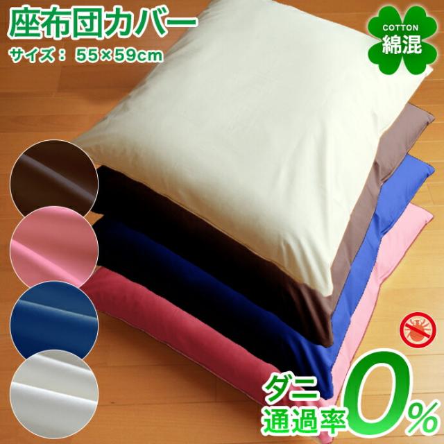 防ダニ 座布団カバー 優しい 綿混 高密度 ザブカバー おしゃれ 北欧 柔らか 洗える 55×59cm メール便対応 ダニ防止 花粉対策 清潔 銘仙判