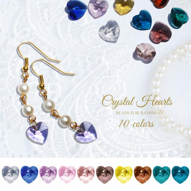 クリスタルハート ビーズ10個セット | ハートビーズがあれば誰でも可愛く! クリスタルハート ビーズ デコパーツ 封入 ピアス UVレジン 手芸 レジン アクセサリー 材料