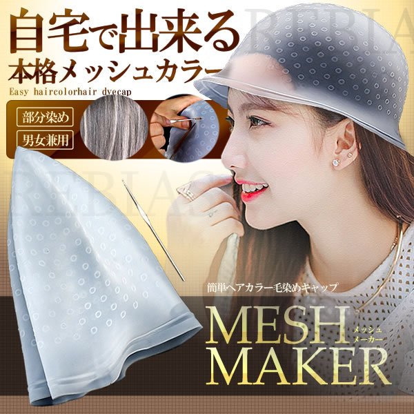 ヘアキャップ かんたんメッシュメーカー 毛染めキャップ 髪染め用 シリコン製 ヘアカラー ヘアキャップ 自宅 ヘアカラー