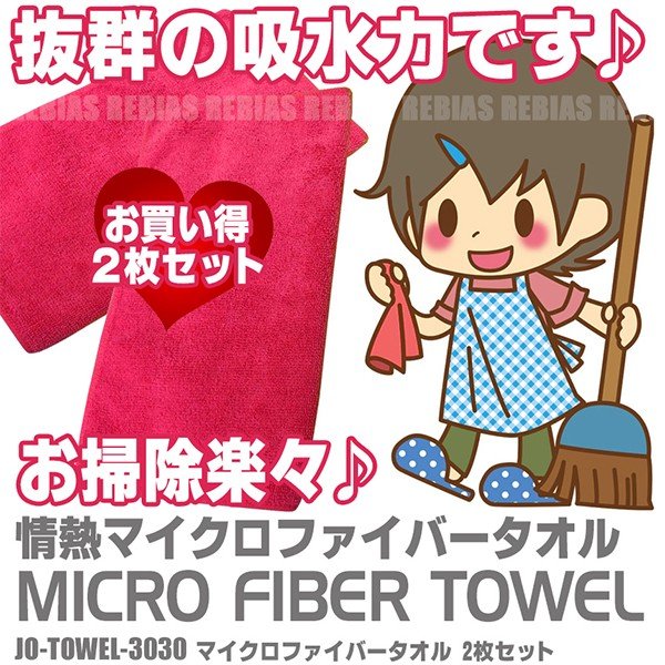 情熱 洗車 マイクロファイバー タオル 30cm×30cm 2枚 セット レッド 吸水 大掃除 パッション