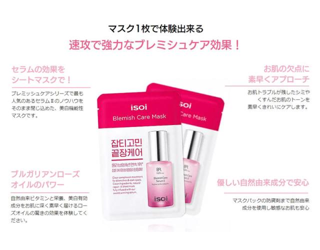 アイソイ ブルガリアン ローズ ブレミッシュ ケア マスク isoi シートマスク マスクパック スキンケア lattencos ラテアンドコス 韓国コスメ