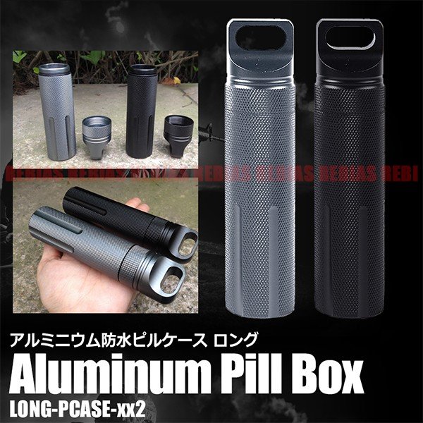 アルミニウム 防水 ピルケース ロング 2本セット アウトドア レジャー 小物入れ ホルダー