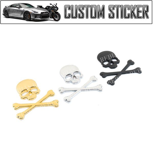 立体的なドクロのエンブレム定番モチーフの大人気アイテム♪立体的なデザインで高級感もあります!海賊みたいでカッコいい!顔パーツと骨パーツは別々なのでリアの車名エンブレムを挟んだり貼り方次第でオリジナリティが出ます♪サイズ 顔 約5.5cm×4cm、骨 約8.5cm×4.4cmカラー ゴールド、シルバー、マットブラック※モニターやカメラ等により実際の見え方と 若干違う場合がございます、予めご了承ください。