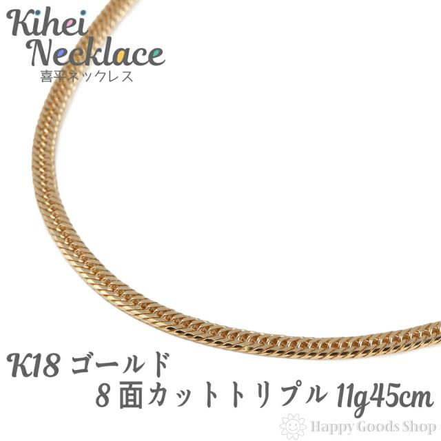 喜平 ネックレス k18 18金 8面トリプル 11g 45cm 造幣局検定マーク刻印入 中留 チェーン 18k キヘイ kihei 人気 プレゼント 誕生日 おしゃれ かわいい かっこいい ゴールド アクセサリー 首飾り シンプル ギフト 贈り物 送料無料 新品