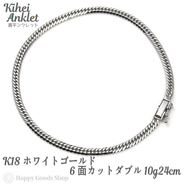 k18 喜平 アンクレット 6面ダブル 10g 24cm 中留 ホワイトゴールド チェーン 造幣局検定マーク刻印入18金 18k キヘイ kihei 人気 プレゼント 誕生日 おしゃれ かわいい かっこいい ゴールド アクセサリー シンプル ギフト 贈り物 送料無料 新品