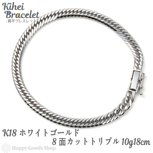 k18 喜平 ブレスレット 8面トリプル 10g 18cm ホワイトゴールド 中留 チェーン 造幣局検定マーク刻印入 18金 18k キヘイ kihei 人気 プレゼント 誕生日 おしゃれ かわいい かっこいい ゴールド アクセサリー シンプル ギフト 贈り物 送料無料 新品