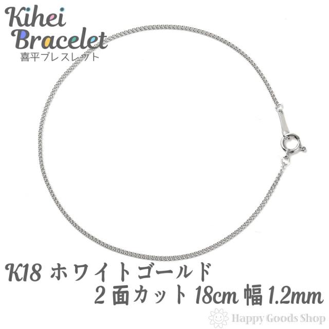 喜平 ブレスレット k18 18金 チェーン 2面 18cm 細い 幅1.2mm ホワイトゴールド 18k キヘイ kihei 人気 プレゼント 誕生日 おしゃれ かわいい かっこいい ゴールド アクセサリー シンプル ギフト 贈り物 送料無料 新品