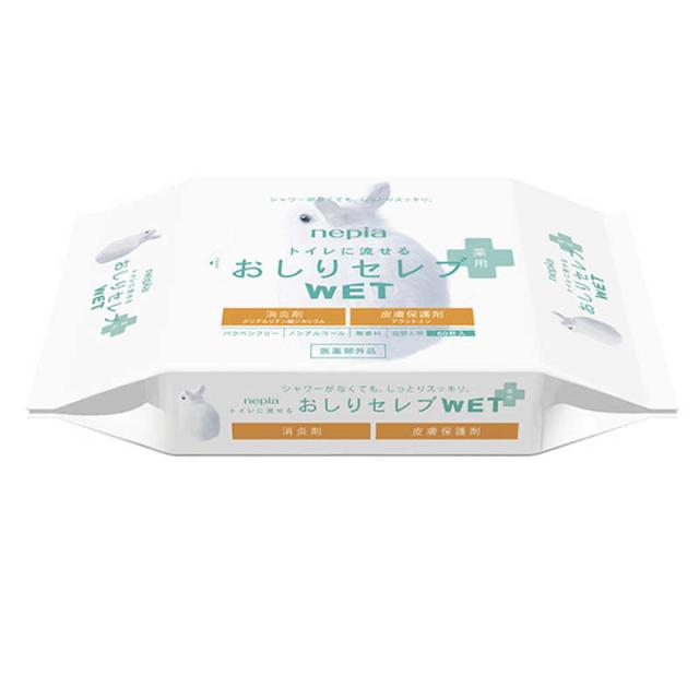 シャワーがなくても、しっとりスッキリ。トイレに流せるおしりの洗浄シート。薬用。