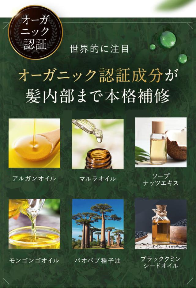 水(オーガニックティー)、ベヘニルアルコール、パルミチン酸エチルへキシル、水添ヤシ油、ミリスチン酸、ステアリン酸グリセリル、パーシック油、ステアラミドプロピルジメチルアミン、セテアラミドエチルジエトニウムサクシニル加水分解エンドウタンパク、γ−ドコサラクトン、トリ(カプリル酸/カプリン酸)グリセリル、ポリクオタニウム−10、スクレロカリアビレア種子油、アルガニアスピノサ核油、ニゲラサチバ種子油、シンジオフィトンラウタネニ核油、バオバブ種子油、フムスエキス(フルボ酸含有)、ゼイン、加水分解エンドウタンパク、加水分解シルク、水溶性コラーゲン、加水分解エラスチン、シロキクラゲ多糖体、ヒアルロン酸Na、ジラウロイルグルタミン酸リシンNa、乳酸、グリセリン、ユズ果実エキス、サンショウ果実エキス、グレープフルーツ果実エキス、スイカズラ花エキス、プルサチラコレアナエキス、銀、シャクヤク根エキス、アルニカ花エキス、オドリコソウ花/葉/茎エキス、オランダガラシ葉/茎エキス、ゴボウ根エキス、セイヨウキズタ葉/茎エキス、ニンニク根エキス、セイヨウアカマツ球果エキス、ローズマリー葉エキス、ローマカミツレ花エキス、アシタバ葉/茎エキス、ソメイヨシノ葉エキス、香料(香料・精油ブレンド)