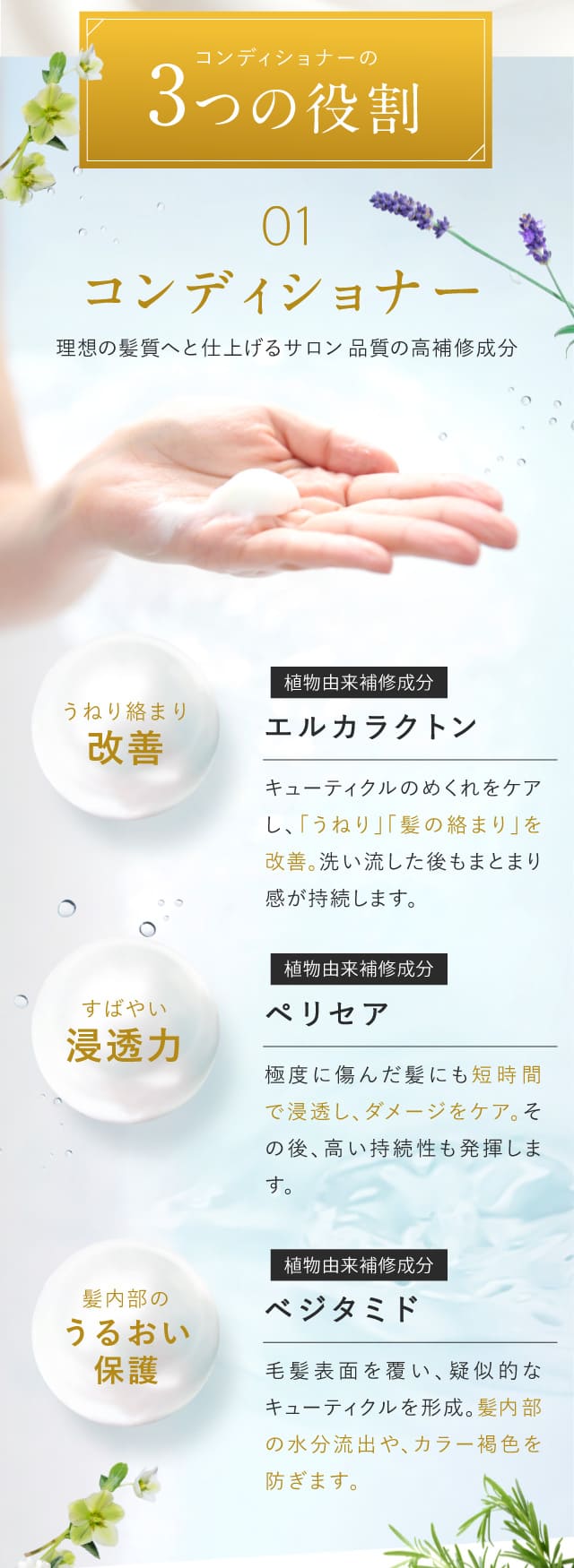 内容量 : シャンプー300mL(1.5ヶ月分) コンディショナー300mL(1.5ヶ月分)