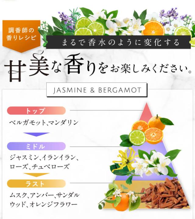 ※ジャスミン&ベルガモットの香り 石油系界面活性剤、保存料、シリコン、防腐剤一切不使用