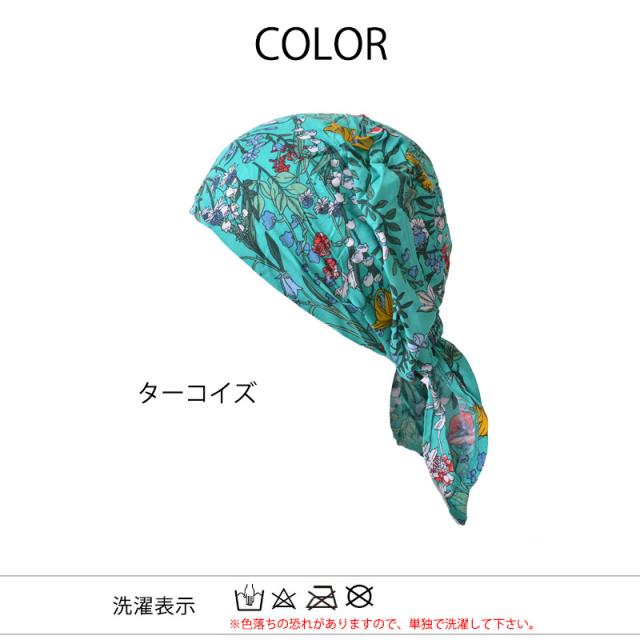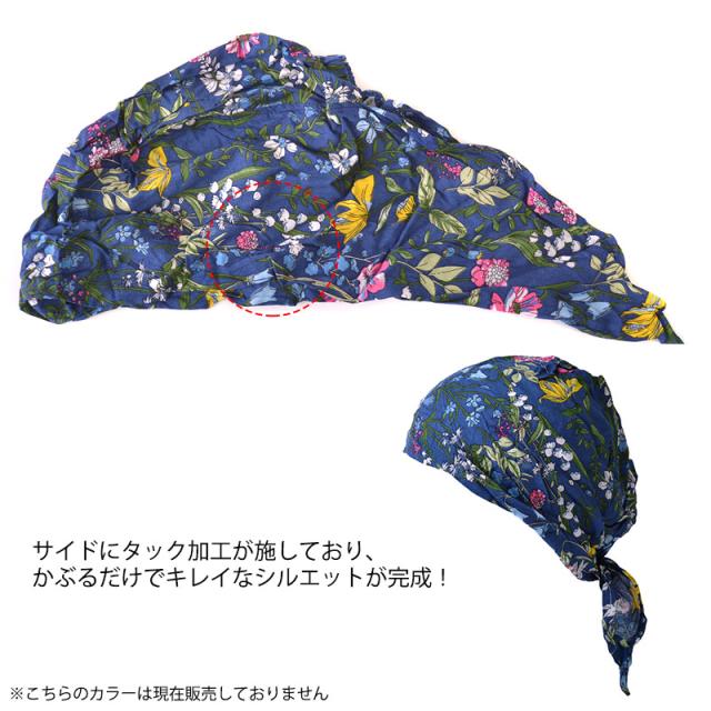 レディース 春 夏 春夏 春用 夏用 ネイビー 紺色 バンダナ バンダナキャップ バンダナ帽子 三角巾 大人 おしゃれ 頭巾 医療用帽子 抗がん剤 | シャプロン ターバンキャップ (フラワー) sh-flw