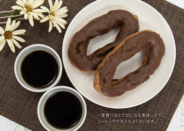 ・カリカリサクサクしたハードな硬さのクッキードーナツ生地にチョコレートがたっぷりかかったハードパンです。