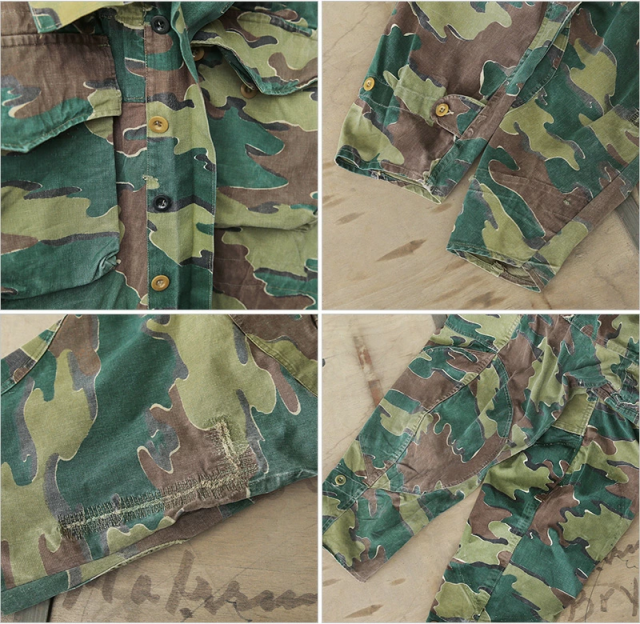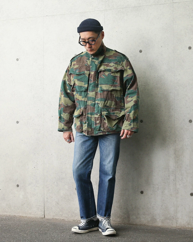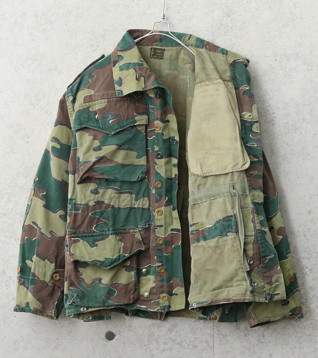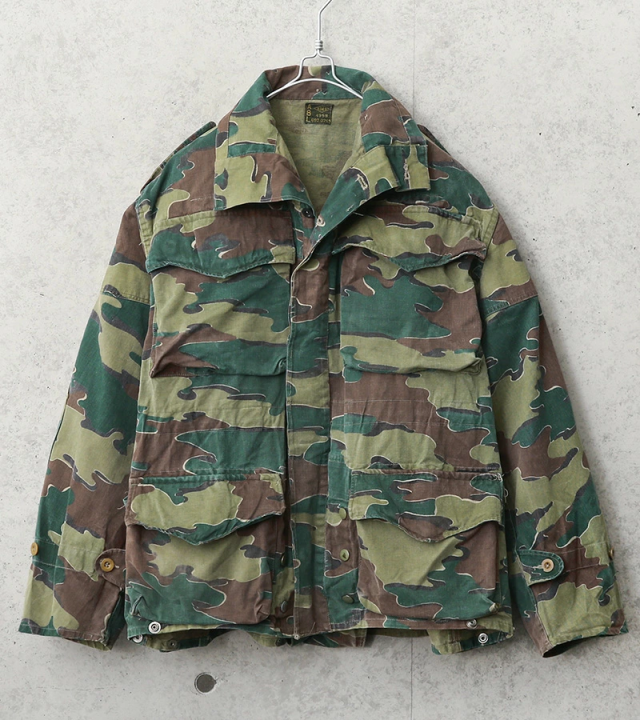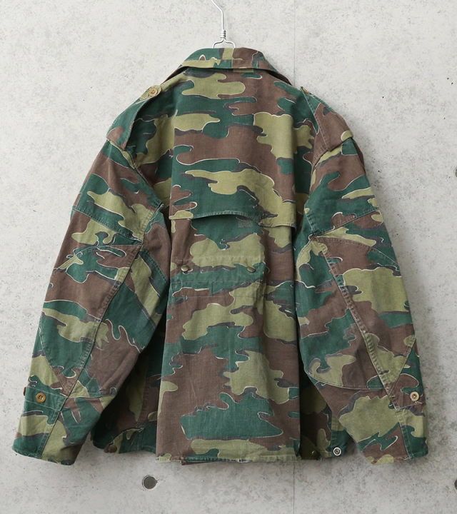 ベルギー軍の代表的なカモフラージュ柄であるジグソーカモを採用したジャケットで、50〜60年以上前の見事なヴィンテージ感の漂う雰囲気のジャケットです。今後手に入れることは非常に困難で希少なカモ柄のフィールドジャケットです。