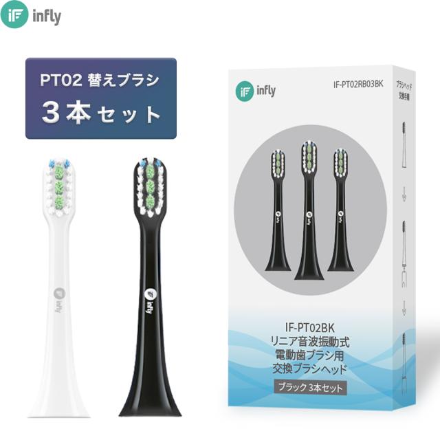 インフライ infly PT02 電動歯ブラシ 替えブラシ 替え 音波振動歯ブラシ 電動はぶらし 交換ブラシ デュポンブラシ やわらかめ キャップ付き 子供 大人 ホワイトニング コンパクト 歯ぐきケア 口腔ケア 歯垢除去 歯石除去 口臭予防 子供用 純正「白 / 黒 」