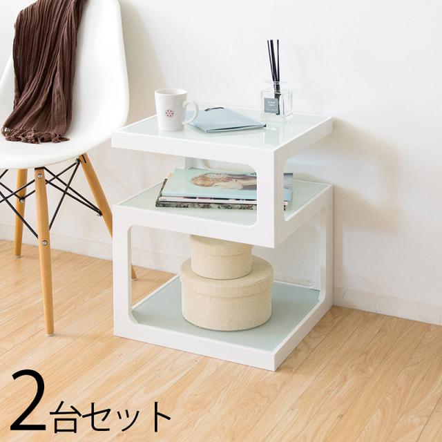 ARA2-ST【2台 セット】 サイドテーブル ナイトテーブル カラー| ホワイト色 サイズ| 幅40×奥行き40×高さ52.5cm ガラス天板