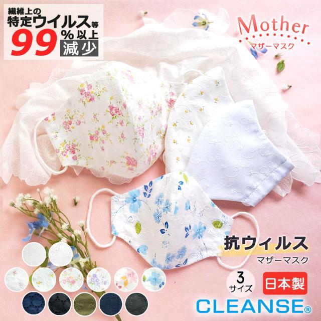 マスク 日本製 洗える クレンゼ 抗菌 レース おしゃれ 布マスク 大人 綿(表面) 抗ウイルス 小さめ 花柄 クラボウ 布 コットン レース生地 個包装 個包装 立体 かわいい ウイルス 生地 イータック 冬 秋 春 子供 女性 キッズ こども 子供用 マザーマスク 彩の国優良ブランド品