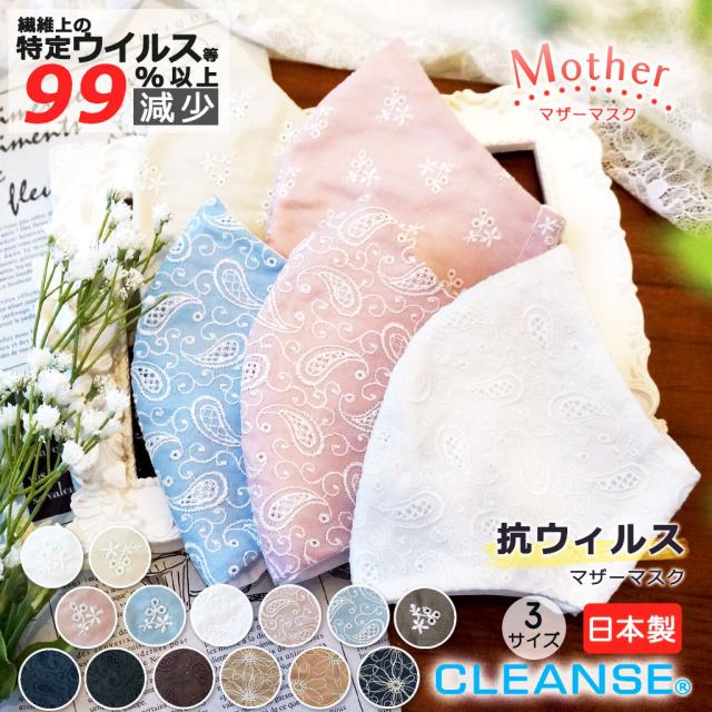 布マスク 日本製 洗える クレンゼ マスク 送料無料 抗菌 レース おしゃれ 大人 綿(表面) 抗ウイルス 小さめ 花柄 クラボウ 布 コットン 高級レース 個包装 グレー 黒 個包装 かわいい ウイルス 生地 冬 秋 春 子供 女性 キッズ こども マザーマスク 彩の国優良ブランド品