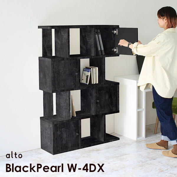 本棚 扉付 大容量 キャビネット 収納 おしゃれ 扉付き アンティーク 飾り棚 4段ラック ブラック ラック 棚 BP W-4DX ☆