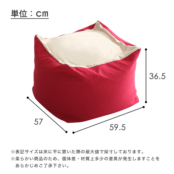 | 材質 | 中材:発泡ポリスチレンビーズ/高弾性ウレタンフォーム収縮する生地:ポリエステル88%・ポリウレタン12%収縮しない生地:ポリエステル100% |