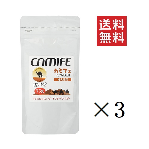 カモス カミフェ キャメルミルク パウダータイプ 哺乳類用 75g×3個セット まとめ買い ラクダのミルク コラーゲン 粉末 滋養 犬 猫 健康 栄養補助 サプリ