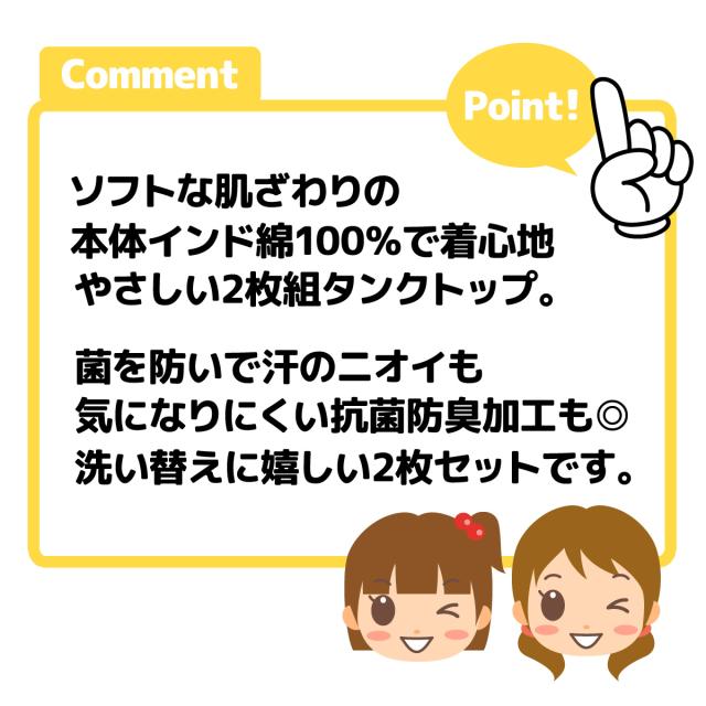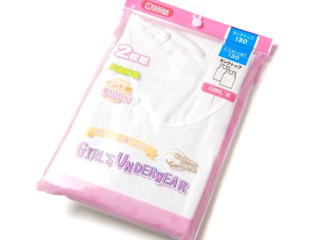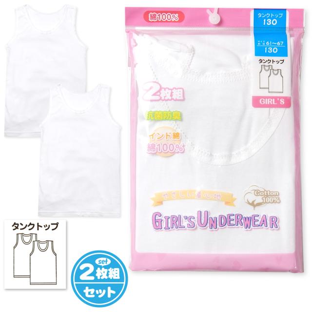 【送料無料】女児 キッズ ジュニア 2枚組 タンクトップ 本体インド綿100% 抗菌防臭 無地 肌着 下着 インナー 子供 女の子 100cm 110cm 120cm 130cm 140cm 150cm yg-0518【メール便対応】