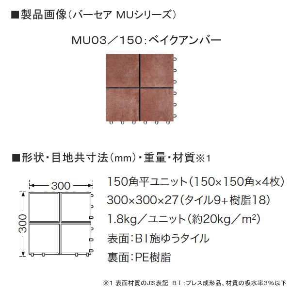 | 材質※1 | 表面:BI施ゆうタイル 裏面:PE樹脂 |