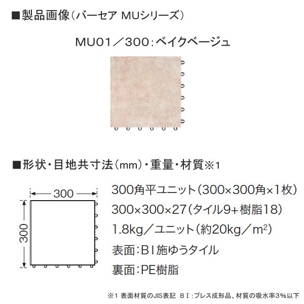 | 材質※1 | 表面:BI施ゆうタイル 裏面:PE樹脂 |