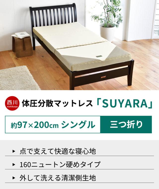 マットレス 西川 スヤラ SUYARA 三つ折り シングル 厚み9cm 160ニュートン 洗える 側生地 高反発 敷き布団 体圧分散