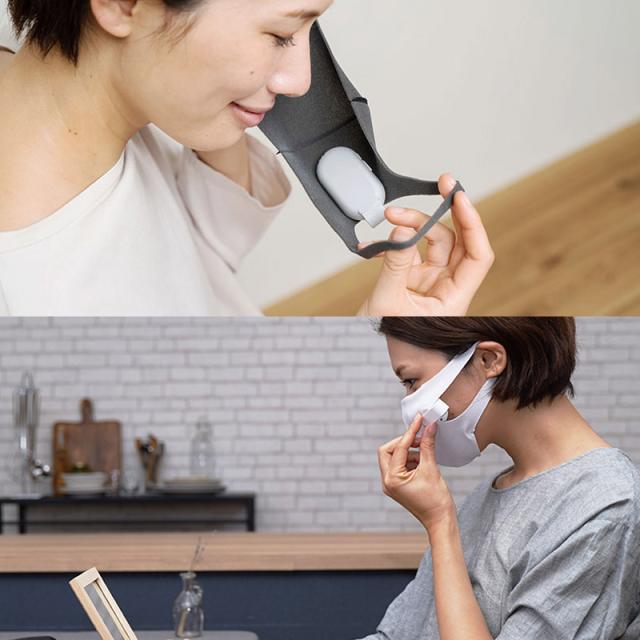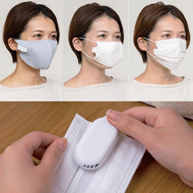 マスクを挟み込む取付け方法だから、さまざまなマスクに対応できます。