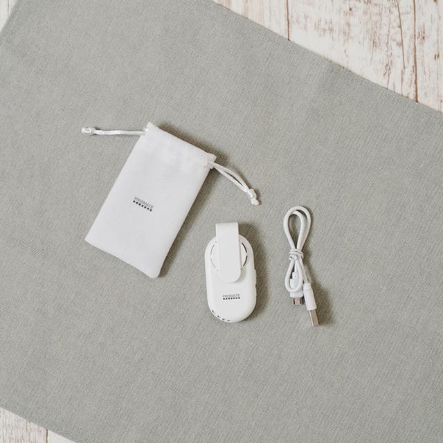 (クリックポスト発送)マスクエアーファン マスクに装着する充電式の小型ファン マスク内の暑さや蒸れの軽減に マスクを挟み込む取付け方法でさまざまなマスクに対応 約22gの超軽量、極小サイズ 充電式 専用ポーチ付