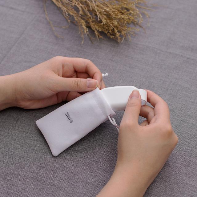 シンプルなデザインの小さな専用ポーチが付属。持ち歩く時にも安心です。