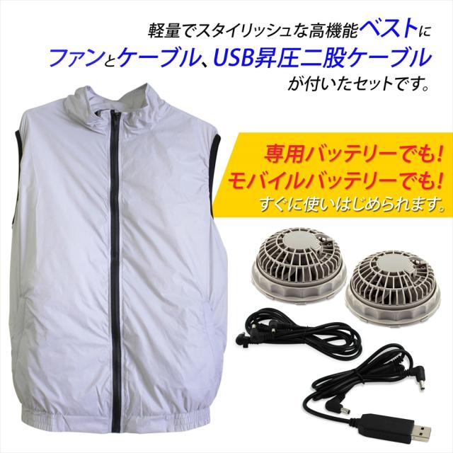 ファン付き作業服 (ファン付き作業服 ベスト 単品 XLサイズ) (ファン2個ケーブルセット) (USB昇圧二股ケーブル) 3点セット 【宅配便のみ】