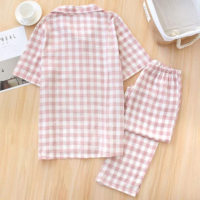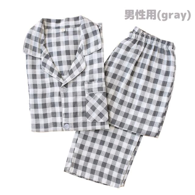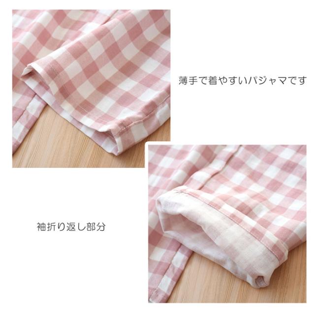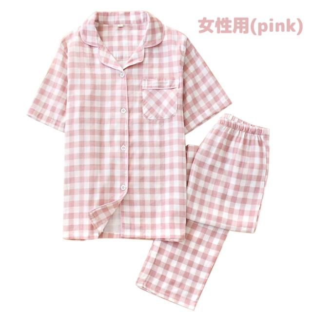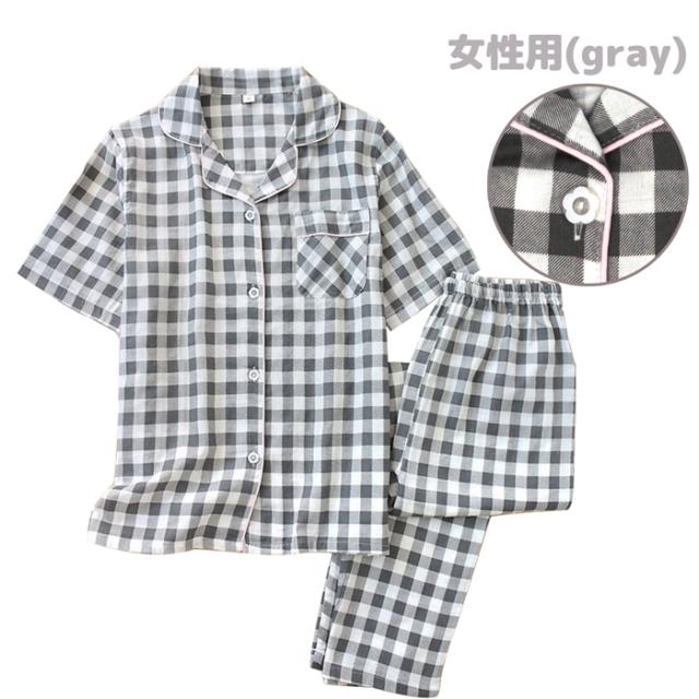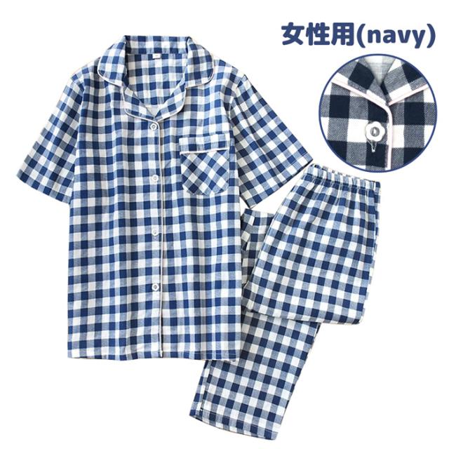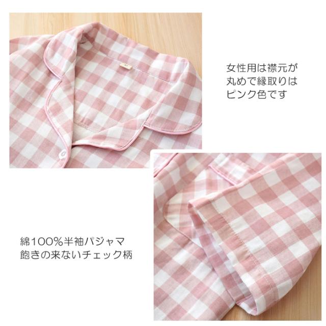 パジャマ 綿100% レディース メンズ ボタン 前開き 半袖 長ズボン 上下1セット チェック 春 夏 男性用 女性用 お揃い 入院 授乳 pjm7