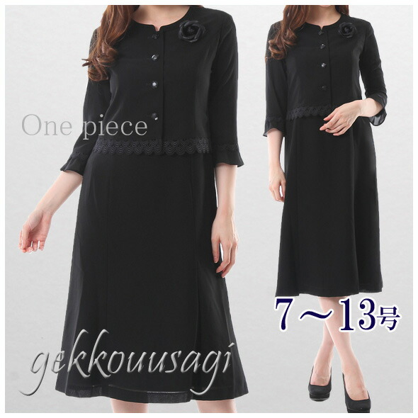 【ご家庭の洗濯機で洗える】小さいサイズ 7号/9号/11号/13号/23号 大きいサイズ ブラックフォーマルワンピース ノーカラー 裾レースジャケット 一体型ワンピース サロペット 冠婚葬祭 礼服・喪服・法要・卒業式・入学式 750(am1y4)