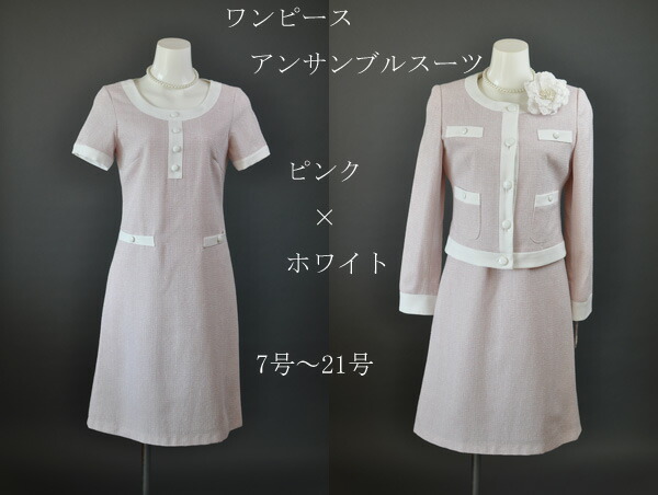 アンサンブルスーツ ワンピース 13号 清楚 値下げ 卒園式 入園式 卒業式 入学式 七五三 お宮参り イベント 体型カバー マタニティ お値段以上 ママ スーツ セレモニー スーツ 20代 30代 40代 50代 ピンク×ホワイト 1238302(SB3F6)